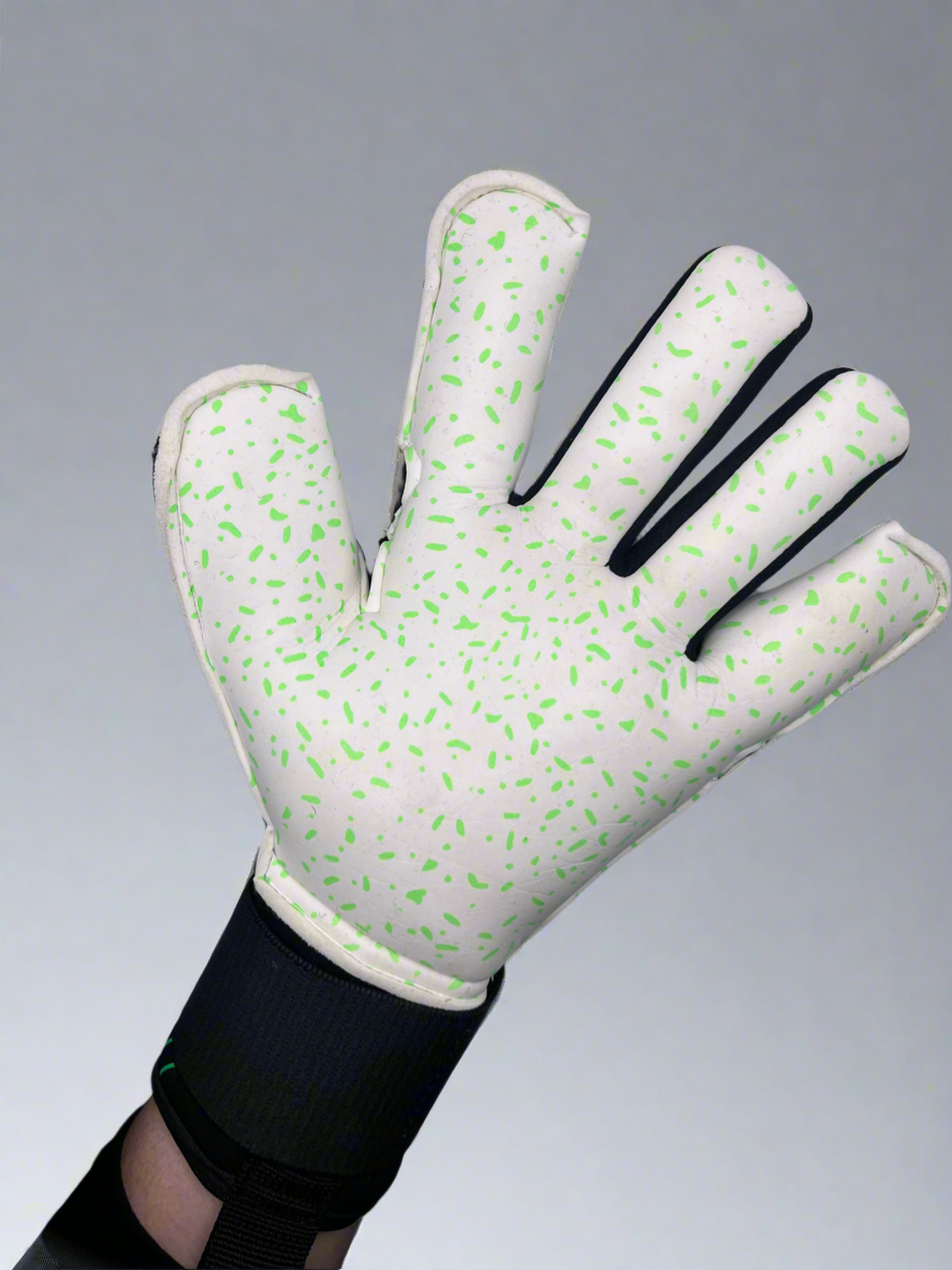 The Beta+ gloves combine style and performance with a sleek black and green design that exudes confidence. Built with the classic VG3 Negative Cut, they offer a traditional fit and feel, ensuring comfort and reliability for goalkeepers at every level.
